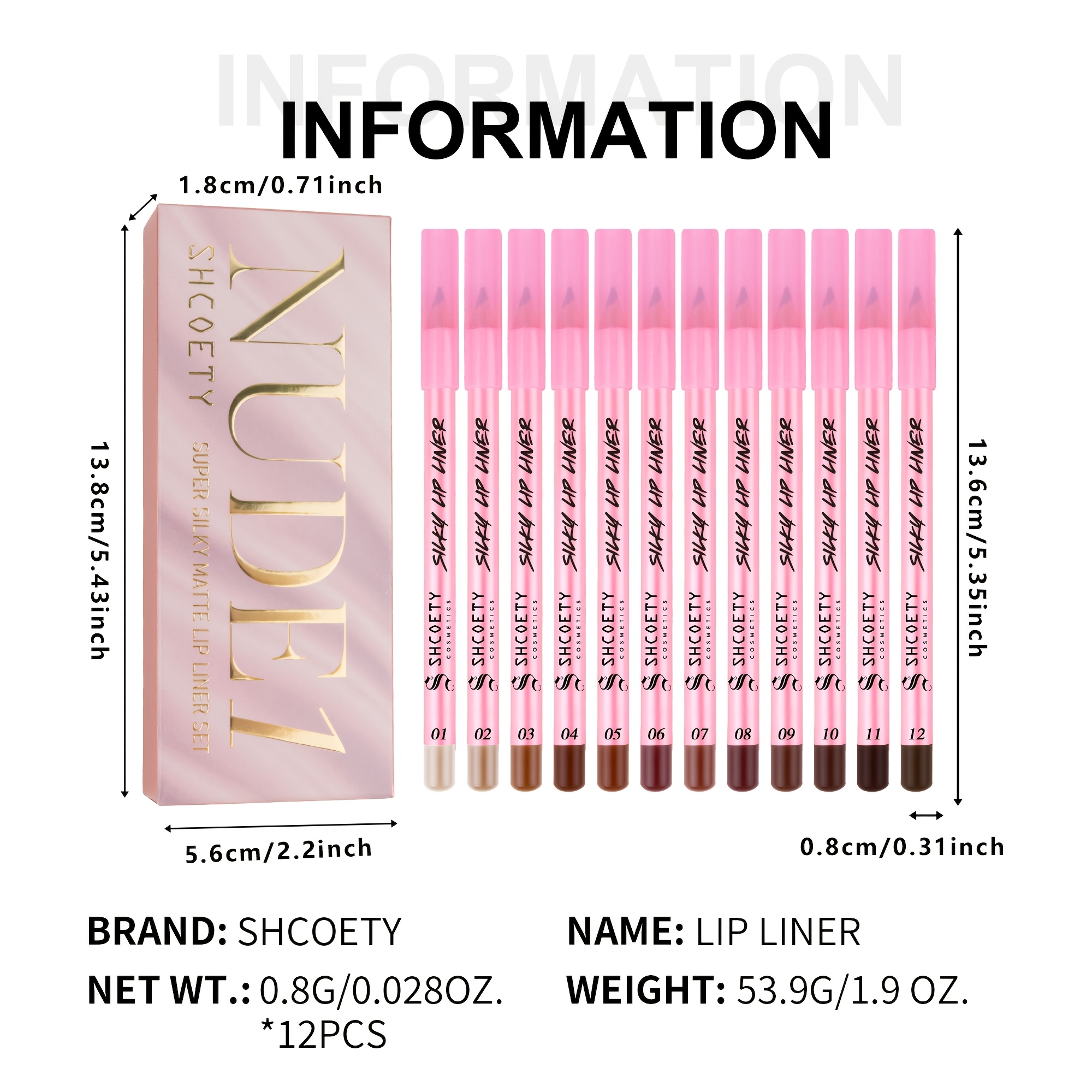 Item Form: Pencil Skin Type: All Skins Color Tone: Mixed Color System Makeup Effect: Matte Product Benefits: Long lasting Brand: SHCOETY Item ID: GP1480484 Origin: Zhejiang,China
