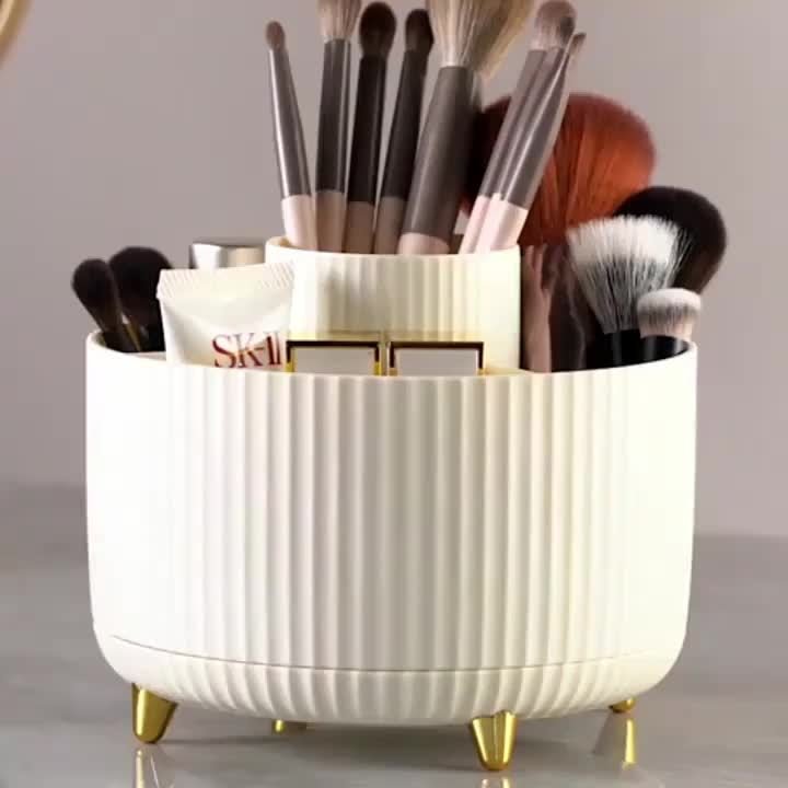 Luxury 360-Degree Rotating Makeup Organizer with 5 Compartments – Hypoallergenic, Durable Plastic Storage for Brushes, Lipsticks & More – Easy Install, Polished Finish